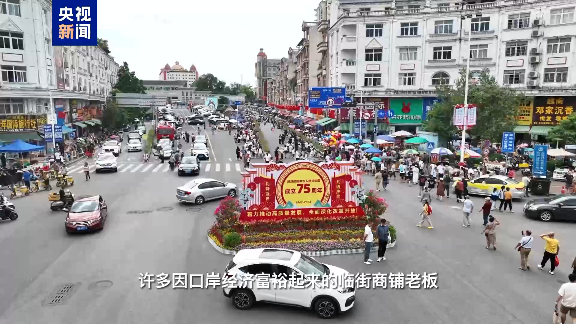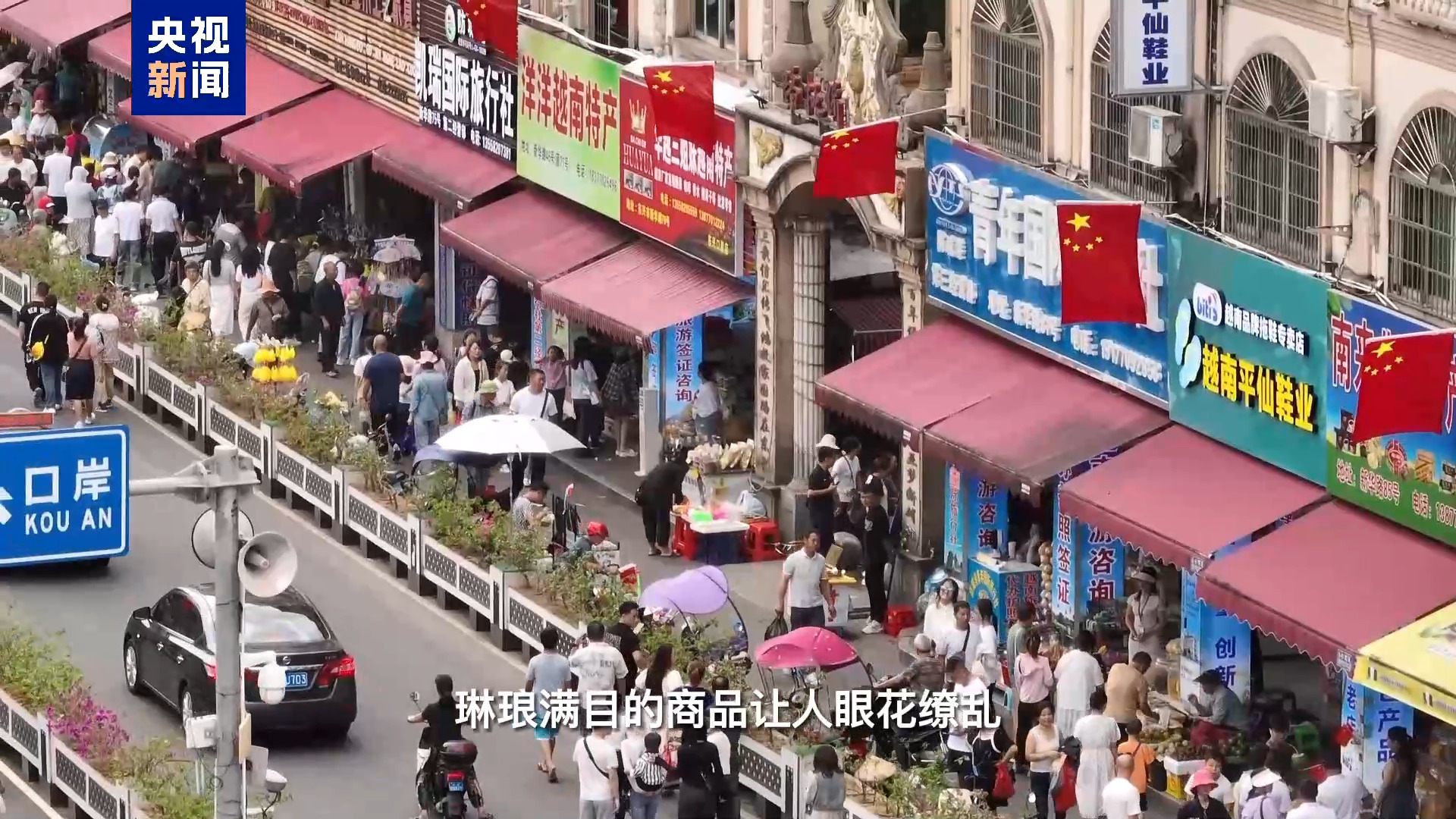 人气最旺的国旗街,其实它的本名叫新华路,因为在20多年前,许多因口岸经济富裕起来的临街商铺老板,为表达对新中国的敬意,自发在商铺前挂起五星红旗。久而久之,“国旗街”便成了新华路另一个美丽的名字。