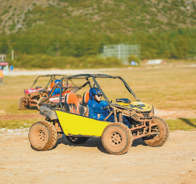 游客在丽江猎鹰谷驾驶越野卡丁车。
