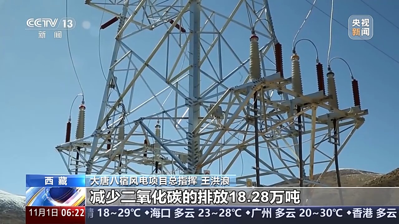 大唐八宿风电项目总指挥 王洪浪:项目投产后每年可以新增清洁电力2.23亿度以上,可节约标(准)煤约7.31万吨,减少二氧化碳的排放18.28万吨。可以满足23万人全年生活用电。在保障人民群众冬季供暖和电力安全供应的同时,可有效地改善西藏自治区的能源结构。
