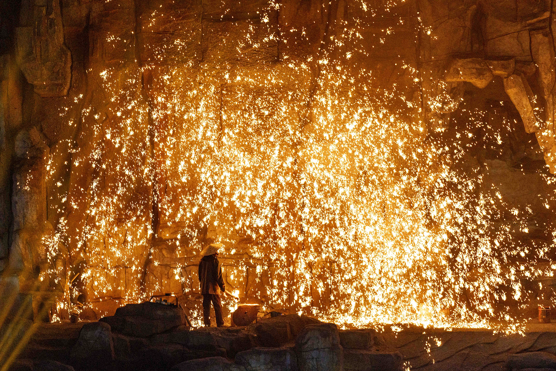“当然,核心还是打铁花,我们这每天晚上都是108人——世界吉尼斯纪录级别的演出!”