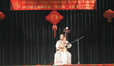 二零二五年二月八日,凌晨在第七届匈牙利“中国春”文化节演奏琵琶。受访者供图
