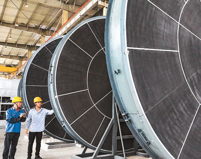 安徽省马鞍山市当涂经开区积极推进装备制造产业转型升级,加速打造高端装备制造现代产业集群,推进经济高质量发展。图为在当涂经开区一家环保装备企业,技术人员检查下线的智能环保装备沸石转轮产品。王文生摄(人民视觉)