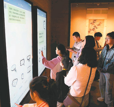 观众在孔子博物馆体验“夫子答问”互动装置。孔子博物馆供图