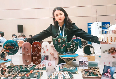 2018年,本科毕业后的彭章英选择回国。她来到景德镇,开始探索陶瓷色卡与非遗绞胎工艺,并进行短期市场调研。同年,彭章英创立了自己的陶瓷首饰品牌“小小”。她介绍道:“这个品牌名寓意着:小小陶火,可以燎原。我心中的理想就像小小的星火,点燃着我,驱使我不断向前,用色彩点亮一个全新的世界。”