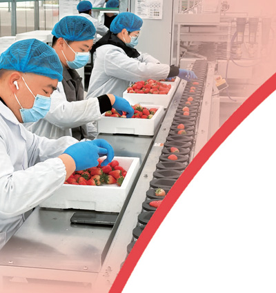 盐都现代农业产业示范园内,工作人员严格进行草莓选果。本报记者 刘乐艺摄