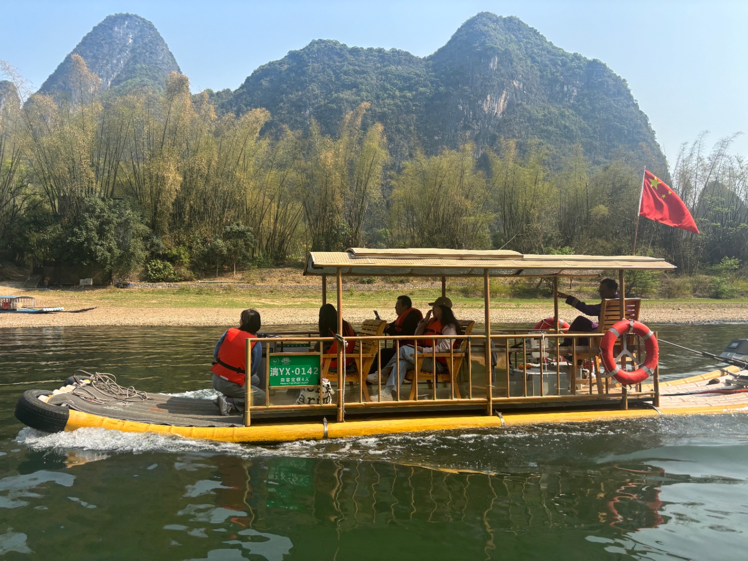 游客乘坐漓江电动排筏