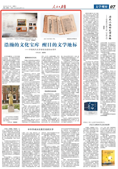 “如今的中国现代文学馆不仅发挥着产品库、资料库的作用,而且在学术研究方面也有长足的进步。”在3月26日举行的中国现代文学馆建馆40周年座谈会上,该馆原馆长陈建功表示。中国现代文学馆主办的《中国现代文学研究丛刊》作为核心期刊,是中国现当代文学研究的重要阵地;其一直坚持的客座研究员制度,发掘延揽了一批中青年批评家,不少已成为当下文学研究和评论界的中坚力量。