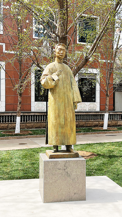为纪念中国现代文学馆建馆40周年,清华大学文科资深教授李象群制作并向该馆捐赠鲁迅塑像《野草》。本报记者 张鹏禹摄