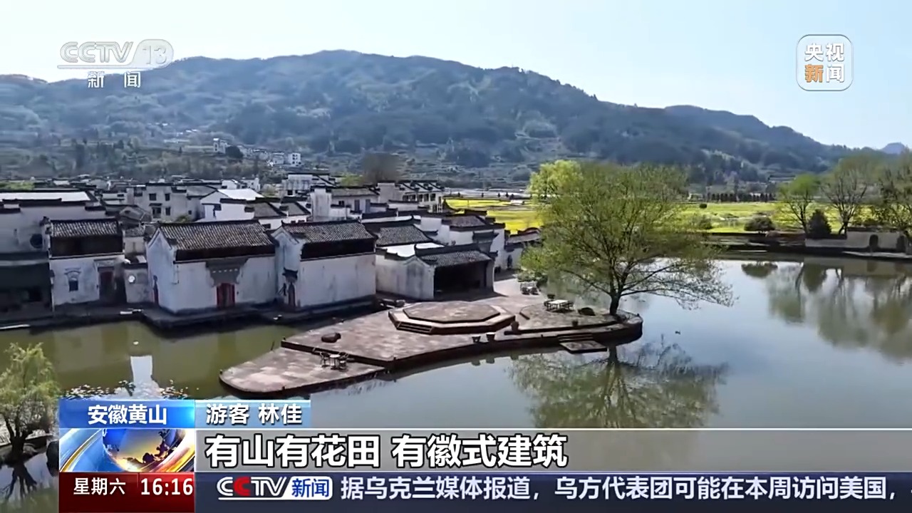 游客 林佳:我们从上海来的,搭高铁2个多小时就到了。沿路的风景很漂亮,有山有花田有徽式建筑。在这边生活,步调慢悠悠,很幸福。