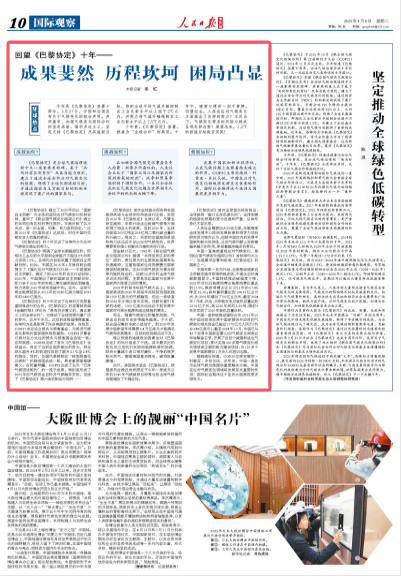 今年是《巴黎协定》签署十周年。3月27日,中国和法国发布关于气候变化的联合声明。声明重申,加强气候变化国际合作的坚定承诺,维护多边主义,坚定支持《巴黎协定》及其温控目标,即把全球平均气温升幅控制在工业化前水平以上低于2℃之内,并努力将气温升幅限制在工业化前水平以上1.5℃之内。