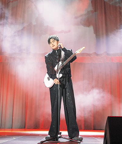 图为刘铭扬在英国约克华侨华人春晚上演唱歌曲《悟空·皮囊》。傅敏供图