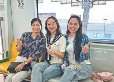 越南河内市民点赞由中企承建的该国首条城市轻轨吉灵—河东线。本报记者 孙广勇摄