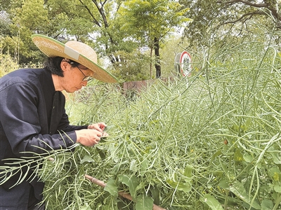 为虫子所做的一切,正在从这片篱笆圈起来的地方,走向更远处。比如,在泥蜂舍附近种下的油菜花,引来了更多蜜蜂,一点点影响到了校园里其他植物的花粉传授。南京师范大学的师生们,也常来这里汲取养分。