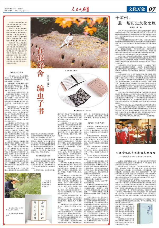 花田里的小径上,朱赢椿选了块石头坐着看书。他是南京师范大学自然艺术研究院院长,他创作或设计的图书曾多次获得“世界最美的书”“中国最美的书”等荣誉,书籍设计是其主业。但这里的故事,既与书有关,又常常跳到书外。他带着观者与读者,观察昆虫,与昆虫共同创作,以轻盈的视角走进昆虫世界,畅想人与自然和谐共生。
