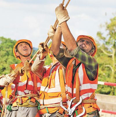 中外工人在东海岸铁路项目上合作施工。