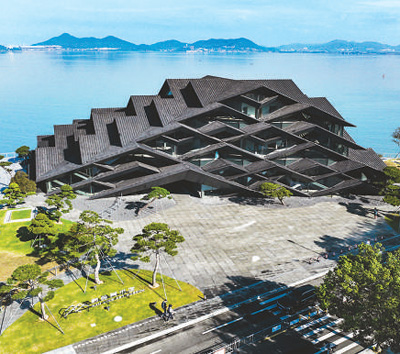 灵感来自韩岭村落瓦片的韩岭美术馆。