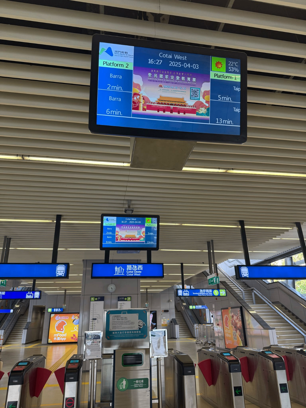 图为澳门轻轨站台的宣传提示。(主办方供图)