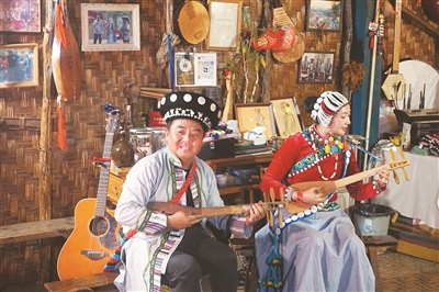 “怒族人起名遵循‘父子联名制’,父辈的名是下一辈的姓。我们的家谱就是一部民族迁徙史,接龙一般的名字中蕴含着很多古老传说……”在云南省怒江傈僳族自治州福贡县老姆登村“江家小院音乐工坊”里,怒族音乐人江晓春和傈僳族妻子张晓慧一边弹达比亚(一种乐器)、吹几味(竹口琴),一边向观众介绍当地富有民族特色的历史文化。