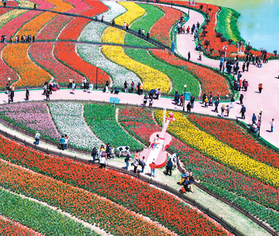 游客在江苏省盐城市大丰区荷兰花海景区赏花游玩。杨素平摄(人民图片)