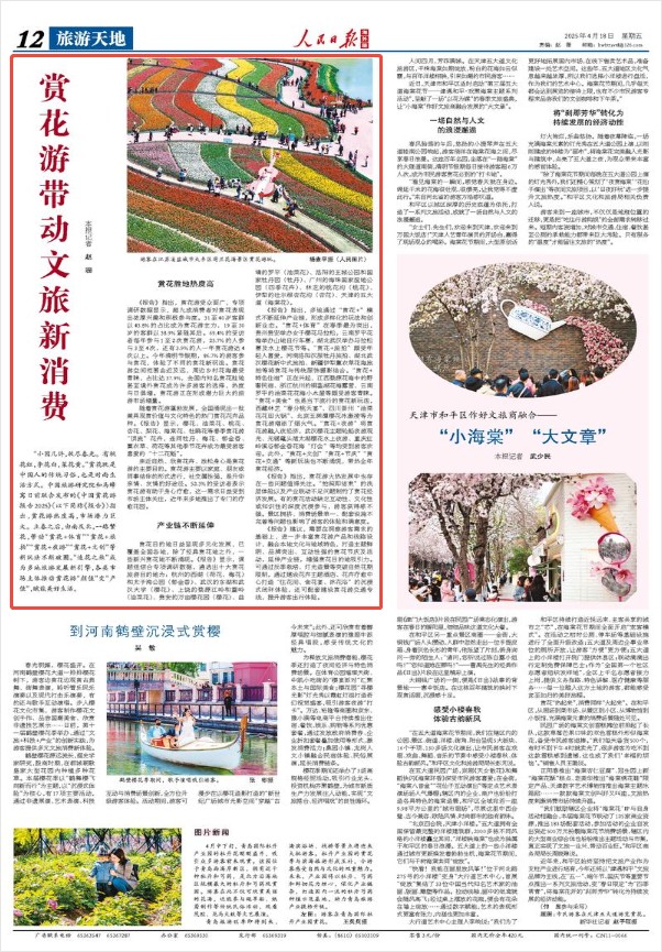 “小园几许,收尽春光。有桃花红,李花白,菜花黄。”赏花既是中国人的传统习俗,也是时尚生活方式。中国旅游研究院和马蜂窝日前联合发布的《中国赏花游报告2025》(以下简称《报告》)指出,赏花游热度高,市场潜力巨大。立春之后,由南及北,一路繁花,带动“赏花+体育”“赏花+旅拍”“赏花+夜游”“赏花+文创”等新玩法不断破圈。“追花之旅”成为多地旅游发展新引擎,各类市场主体推动赏花游“颜值”变“产值”,赋能美好生活。