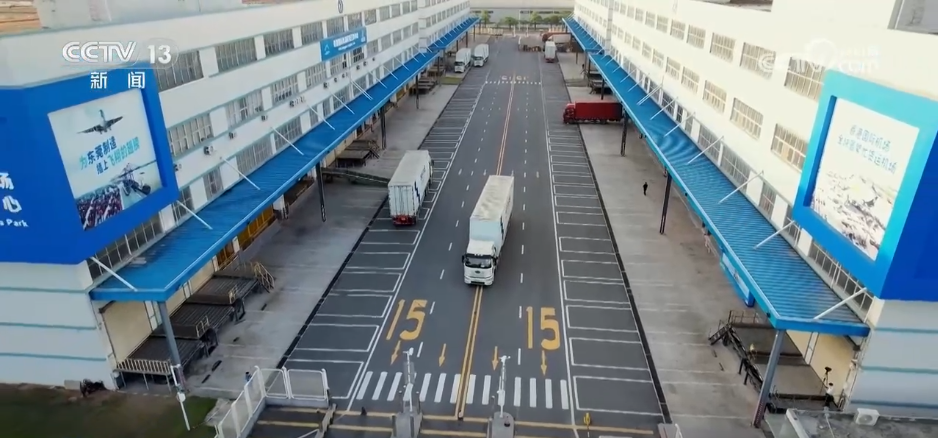 记者在空港中心园区入口看到,只需要3秒,卡口就能完成车牌识别,货车在海关监管下驶入空港中心,搭载的货物将在这里完成相关作业。
