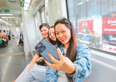 4月12日上午10时许,河内法律大学学生草原熟练地登上列车,坐在喜欢的窗边位置,出发去学校上课。从文溪站到泰河站,这条线路,她几乎每天往返。“舒服、干净、方便,节省时间。”她说。恰逢周末,这条线路上出行的乘客不少。站台上,一些游客拍照打卡“河内新地标”;车厢里,很多年轻人特意搭乘轻轨看城市街景。