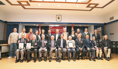 加拿大华侨华人团体举行为“二战”华裔老兵颁发纪念铭牌仪式。