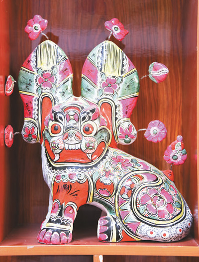 凤翔泥塑中的经典造型“坐虎”。本报记者 高炳摄