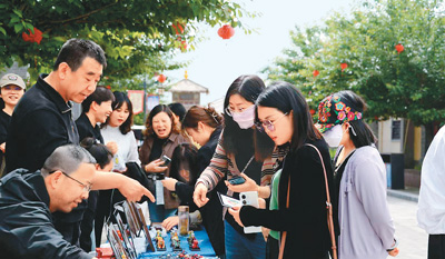 游客在六营村欣赏泥塑作品。凤翔区委宣传部供图