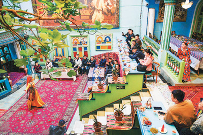 游客在新疆维吾尔自治区喀什古城景区的一家民宿内欣赏歌舞表演。新华社记者 王 菲摄