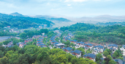 近年来,安徽省芜湖市繁昌区利用自然生态资源,着力打造乡村生态旅游,发展民宿等配套产业。图为乡村民居民宿群与青山相映,构成一幅和美乡村的生态画卷。邢朝明摄(人民图片)