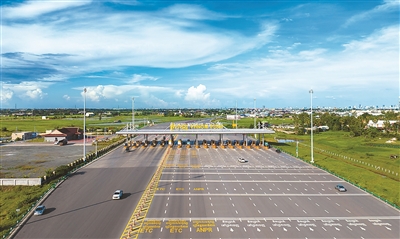 不久后,车辆驶出西港城区,金港高速的入口就在眼前。收费站整齐有序,电子屏上清晰标示着各类车辆的通行费标准。第一次上高速路的普鲁姆达有些不知所措,人工收费通道的工作人员将通行卡递给他,示意他前行,从进入闸口到领卡出闸整个过程不到1分钟。