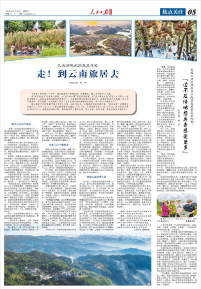 云南省文化和旅游厅相关负责人表示,云南文旅将坚持市场化、专业化、标准化、规模化、品牌化发展,用好丰富的乡村资源,植入先进理念模式,兼顾各方利益,使旅居成为云南省文旅产业新业态、乡村全面振兴新途径,把旅居作为云南旅游的升级版、乡村旅游的新空间、乡村建设的新方向、文化传播的新通道、民族交往交流交融的好方式,持续打造“旅居云南”新品牌。(本报记者 叶 子)