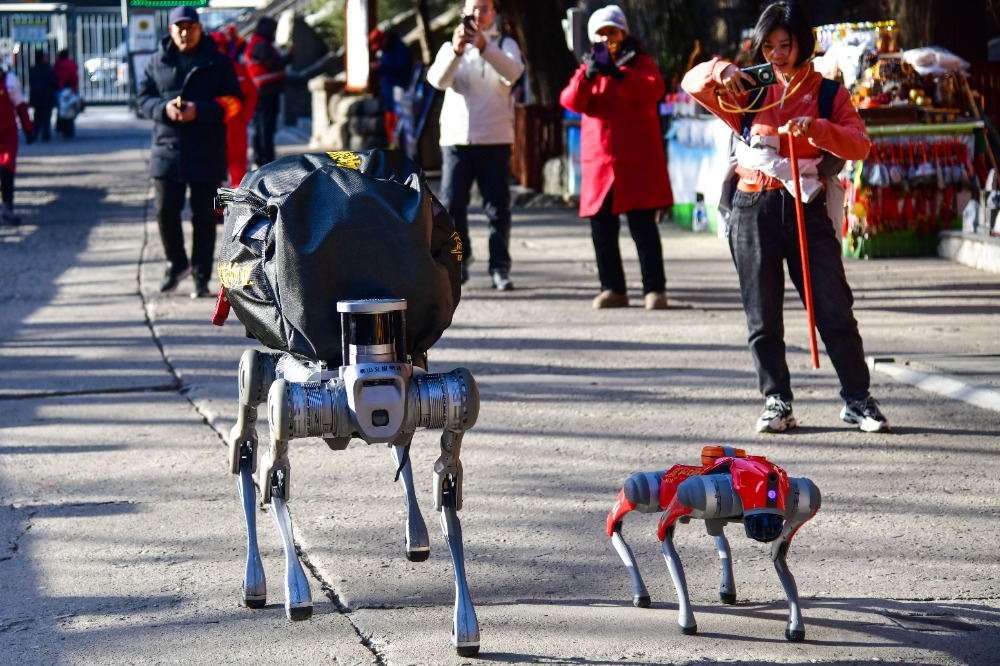 资料图:在山东省泰安市泰山景区,机器狗进行登山测试。(图/新华社)