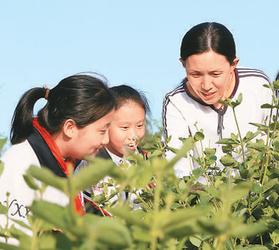 “五一”假期前夕,河北省邢台市平乡县第一小学老师带领学生来到田间地头,学习农作物知识。范钦龙摄(人民视觉)