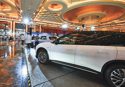 在海南国际会展中心,人们在新能源汽车下乡活动上参观。新华社记者 蒲晓旭摄