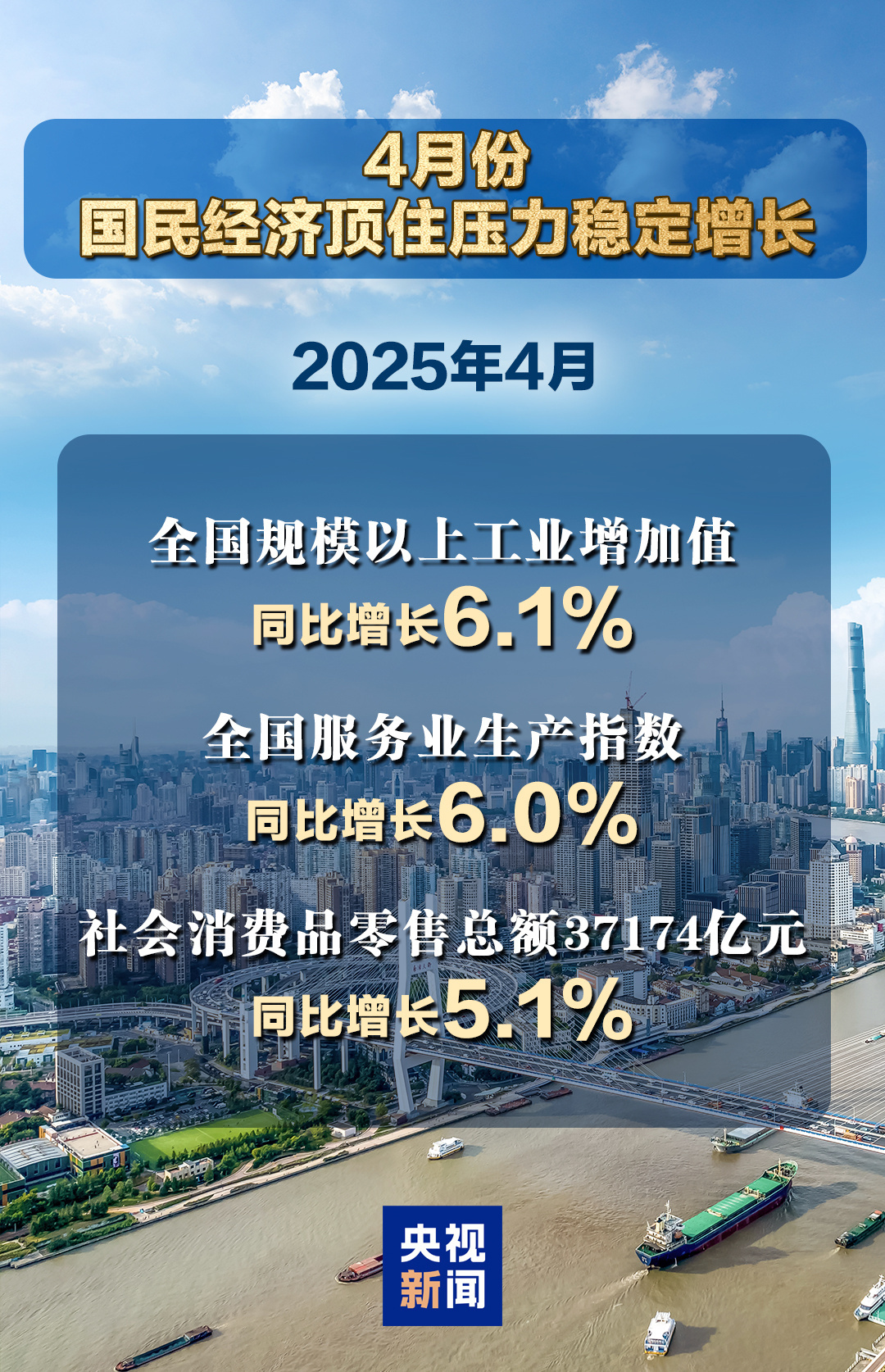 从纵向看,前4个月,中国经济主要生产需求指标增速均明显快于上年全年,社会消费品零售总额和服务业生产指数同比增速均比前3月加快0.1个百分点;4月份,在41个大类行业中,36个行业同比增长,增长面超八成……数据显示,前4个月中国经济顶住压力稳定增长,延续向新向好的发展态势,展现了强大韧性和抗冲击能力。