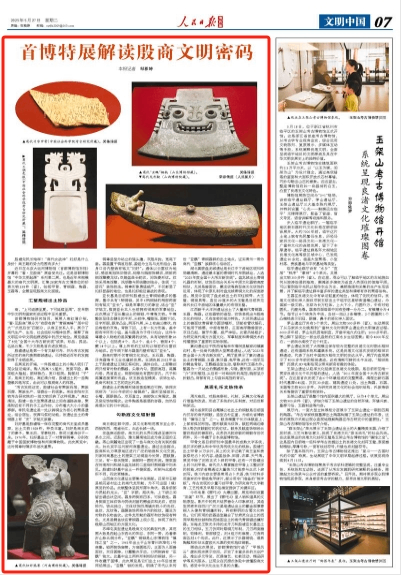 首都博物馆研究馆员、策展人高红清介绍,“看·见殷商”展分为“有册有典”“青铜高峰”“居中衍大”“式范后世”四部分,从商王世系入手,展示了商代生产、生活、社会组织与精神世界,阐释了商文明在中华文明起源进程中的历史地位。展览涵盖了8处“全国十大考古新发现”成果,珍品、孤品、名品云集,不少文物是首次进京展出。