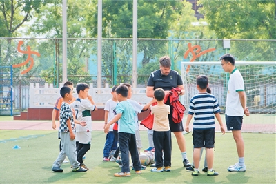 铃声响起,足球教练保罗·切卡·梅纳准时出现在北京市昌平区小汤山中心小学的操场边。孩子们欢呼雀跃,蜂拥着冲向他。“教练,我昨天加练了射门。”“我最近带球技术提高很多!”孩子们簇拥着保罗,你一言我一语。保罗面带微笑,一边点头,一边温柔地为孩子们整理衣角。