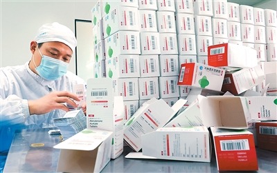 近年来,江苏省连云港市加快发展以医药行业为主的新质生产力,医药创新步伐不断加快,建立起强大的超过万人的研发团队,加速由技术输入变为技术输出,融入全球医药创新链。图为连云港高新技术产业开发区一家药业公司,工人正在将一批药品装盒打包。