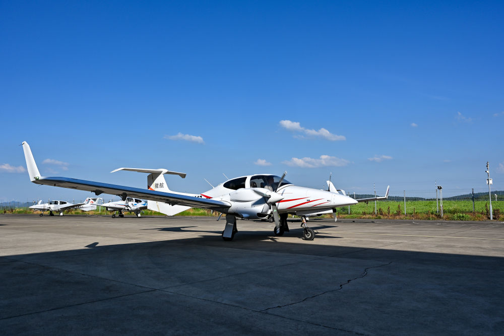 7月3日,在安徽省芜湖市湾沚区航空小镇,一架通航飞机准备起飞。新华社记者 张铖 摄