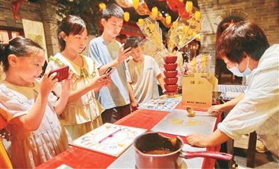 孩子们在山海关中国长城博物馆体验糖画制作。