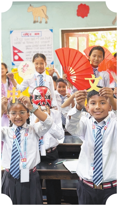 尼泊尔巴尔维卡什英语学校学生在一堂中国文化课结束后合影。