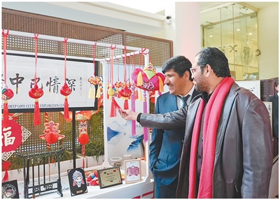 在中国驻巴基斯坦大使馆主办的中国文化创意集市活动上,巴基斯坦民众了解中国民俗文化。