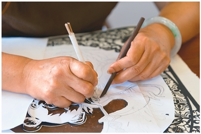 刘莲花在制作剪纸。本报记者 赵 昊摄