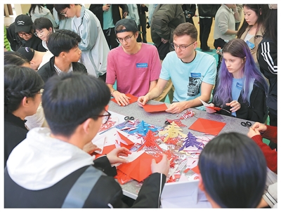 外国留学生体验桐庐剪纸。桐庐县文化发展中心供图