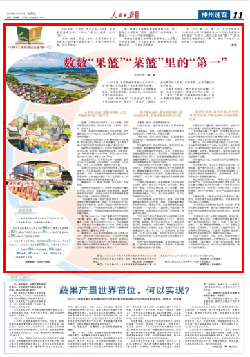 从盛夏的西瓜、桃子到秋天的柑橘、石榴,从春天的蚕豆、香椿到冬天的白菜、土豆,“果篮”“菜篮”里藏着哪些世界第一?蕴含着哪些新趋势、新变化?本报记者进行了采访。