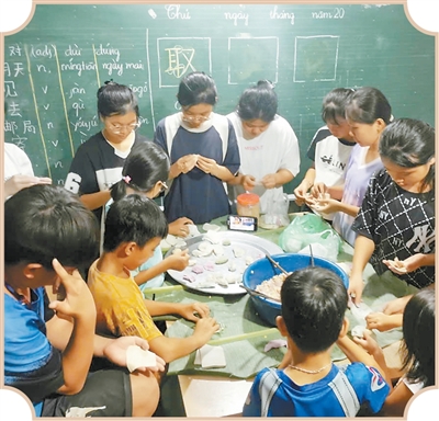 在闭氏映的中文课堂上,越南学生学习包饺子。