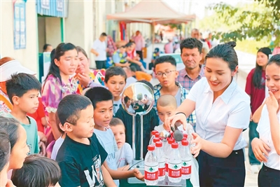 科普大篷车开到疏附县兰干镇,当地学生观看科学实验演示。