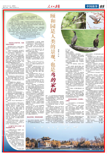 如今,颐和园里有记录的野生鸟类多达147种。在多方共同努力呵护下,颐和园已经成为诸多鸟类青睐的栖息地。每天,从北京甚至全国各地而来的游客们,与鸟类共同徜徉在这片曾经的皇家园林。